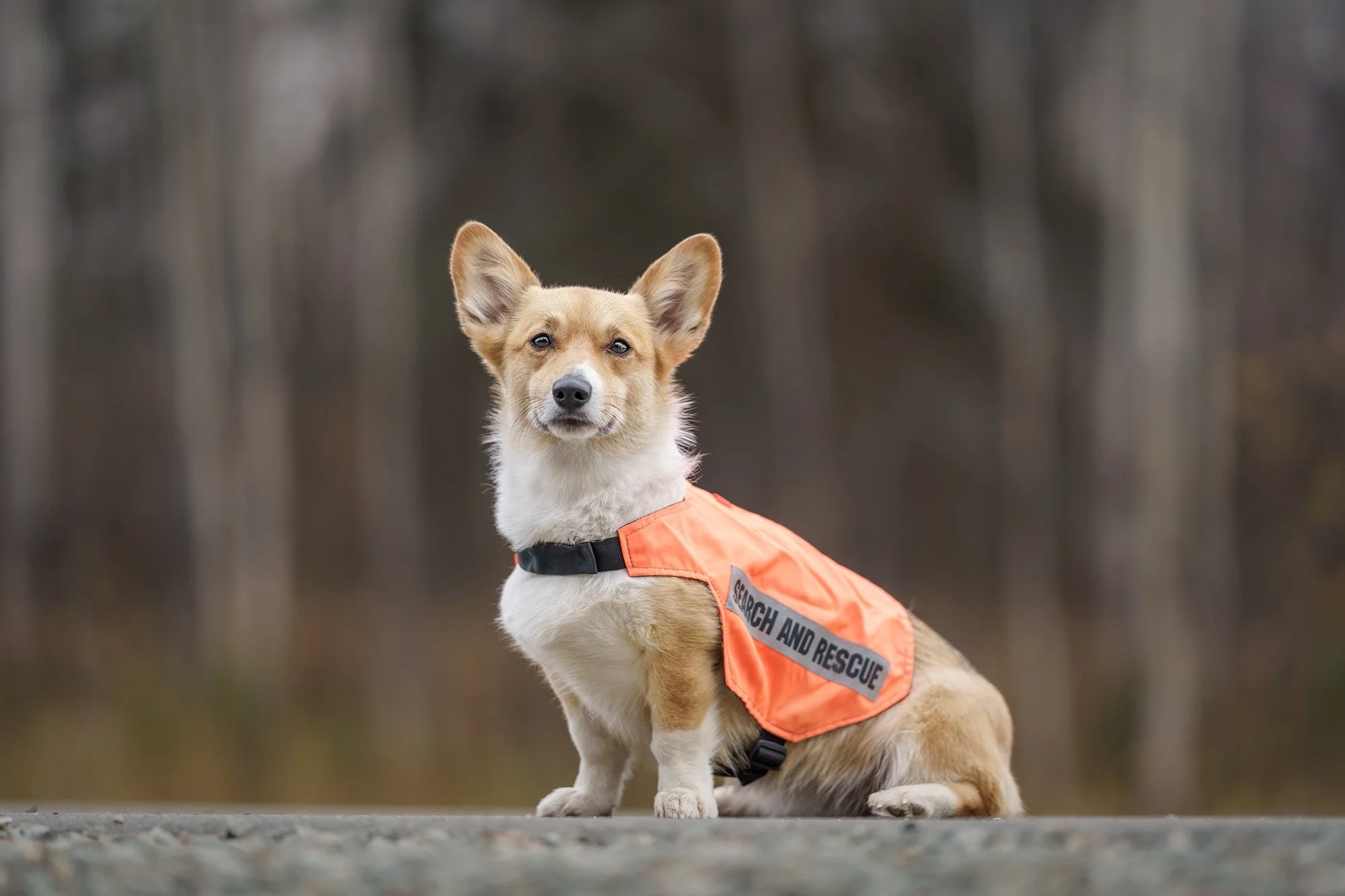 Joan is a Pembroke Welsh Corgi born in 2021. She enjoys her SAR work primarily because she knows that food will be her reward. Her mind is always focused on food: how to get it, where to find it, and what she might eat next. Joan is very clever and often outsmarts her human partner while on her quest to get treats. As a result, her treats are stored in a secure, locked box located in a high cabinet that utilizes a child-proof system.